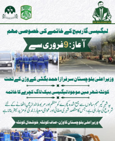 As per the vision of honourable Chief Minister Balochistan Mir Sarfraz Ahmed Bugti, Metropolitan Corporation Quetta is undergoing a focused transformation to deliver efficient, transparent, and accountable municipal services. Our priorities are clear: cleaner streets, reliable streetlights, organized traffic, strengthened enforcement, and a greener urban environment. We are adopting modern systems, improving departmental performance, and opening channels for citizen engagement to ensure real-time service delivery. Quetta deserves a city administration that works with discipline and purpose—and that is the standard we are committed to uphold.